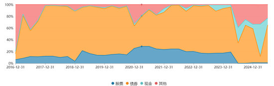 股票长期的仓位在20%以下,2024年以来也接近于零(契约中股票的投资范围是0-95%)。